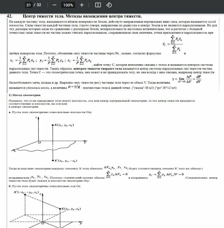 - Центр тяжести тела. Методы нахождения центра тяжести.