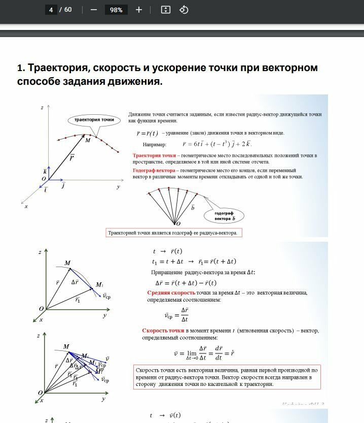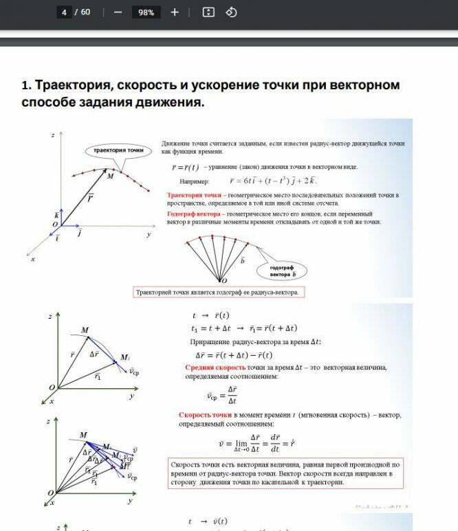 - Векторный способ задания движения точки. Траектория, скорость, ускорение точки.