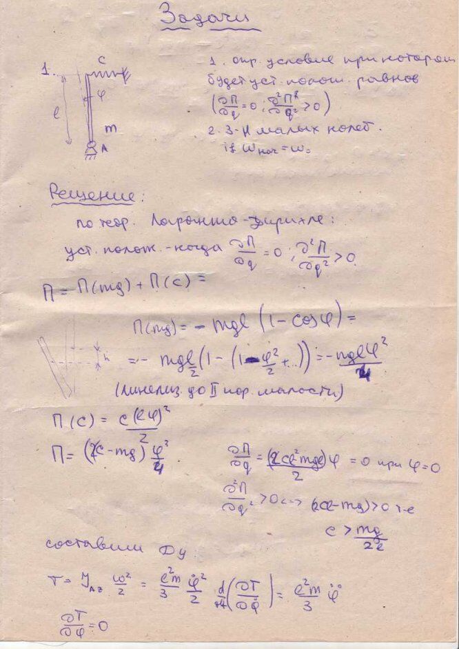 Теорема Карно. 9. Движение точки переменной массы. Дифуры движения. 10. 1-я и 2-я задачи К.Э. Циолковского. 11. Устойчивость положения равновесия механической системы. 12. Выражения для кинетической и потенциальной энергии и диссипативной функции Рэлея в системе с одной степенью свободы. .