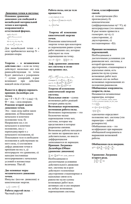 Для студентов МГТУ им. Н.Э.Баумана по предмету Теоретическая механикаУдобная шпора к экзаменуУдобная шпора к экзамену