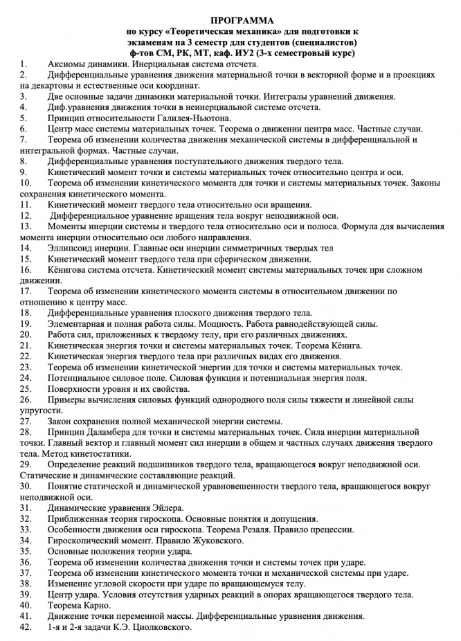 Вся теория для экзамена по теоретической механике (без доказательств) за 3 семестр для специалистов от ФН3.