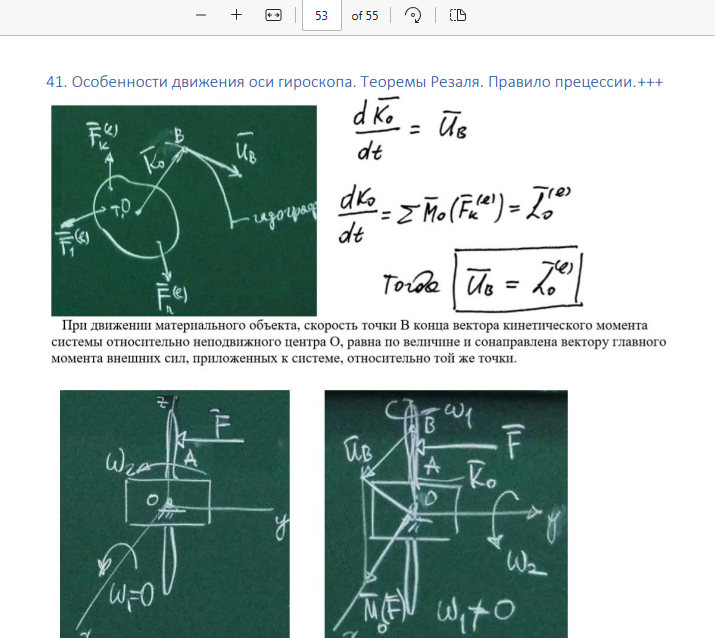 41. Особенности движения оси гироскопа. Теоремы Резаля. Правило прецессии.+++. 53