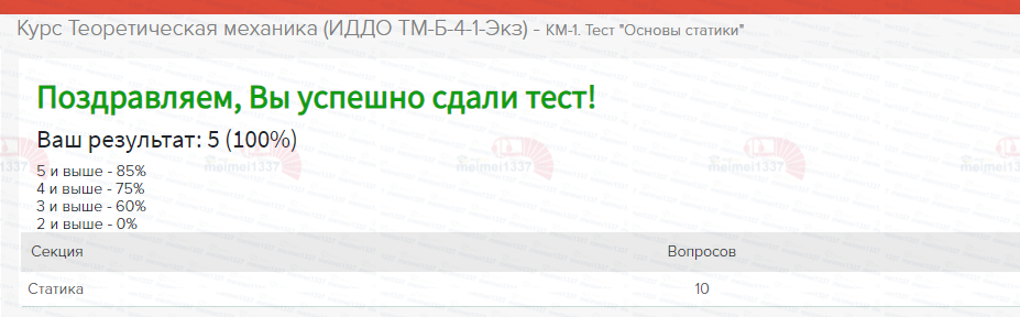 Услуга: Помощь со сдачей - КМ-1. Тест "Основы статики"