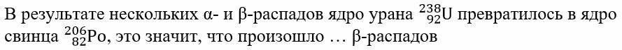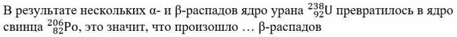 В результате нескольких a- и b-распадов ядро урана 238U превратилось в ядро свинца 282Ро это значит, что произошло ... b-распадов