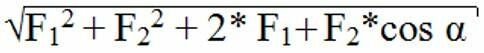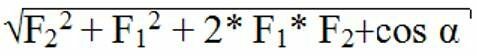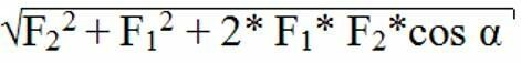 Величину равнодействующей силы, от двух сил действующих из одной точки на одно тело определяют по формуле: