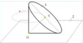 Конус 1 катится без скольжения по неподвижной плоскости 2 так, что его вершина О остаётся неподвижной. Сколько степеней свободы имеет конус?