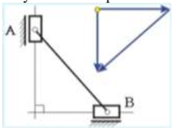 Ползуны А и В, связанные линейкой АВ, движутся по прямолинейным направляющим. Установив, для какой из точек А или В построен приведённый на рисунке треугольник скоростей, определите направление угловой скорости звена АВ.