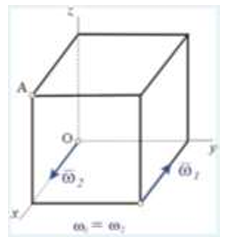 Твердое тело одновременно участвует в двух вращательных движениях. Как направлена скорость точки А?