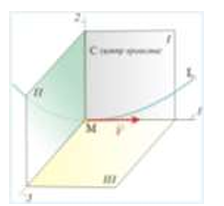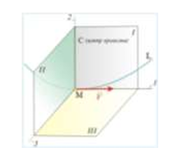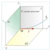Точка M движется по кривой L. В какой из плоскостей естественного трехгранника расположен вектор ускорения этой точки?