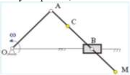 Кривошип ОА, вращающийся равномерно вокруг оси О, приводит в движение ползун В, движущийся по прямолинейным направляющим. Какая из точек А, В, С или М шатуна АМ имеет наибольшее по величине ускорение, если ОА = АВ?