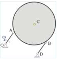 Круглый стол приводится в движение с помощью двух параллельных и одинаковых по длине кривошипов ОА и ВD. Радиус стола в два раза больше длины кривошипа. Длина кривошипа равна а. Кривошипы вращаются с постоянными угловыми скоростями. Определить отношение ускорения центра C стола к квадрату угловой скорости кривошипа.