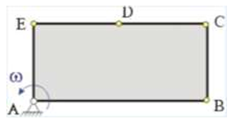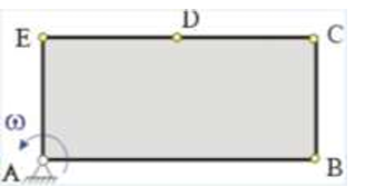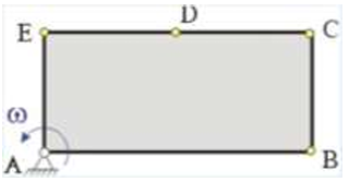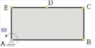 Прямоугольная пластинка вращается вокруг оси, перпендикулярной ее плоскости и проходящй через точку А. Расположить точки A, B, C , D, E в порядке убывания модулей их скоростей