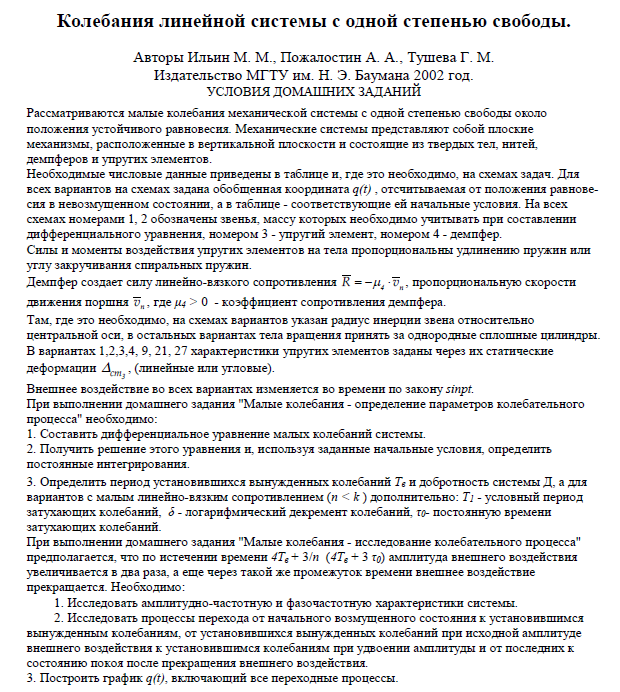 • Условия ДЗ "Колебания линейной системы с одной степенью свободы" - Ильин, Пожалостин, Тушева PDF