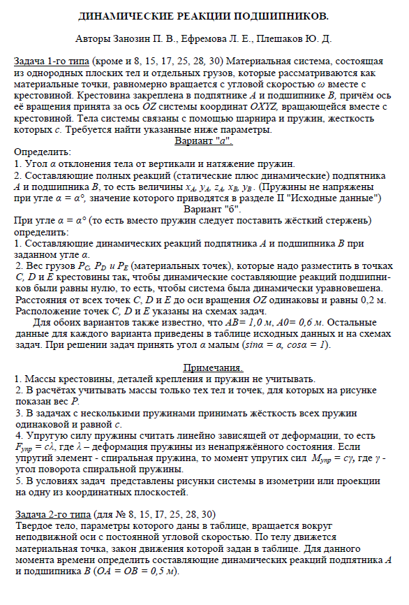• Условие ДЗ "Динамические реакции подшипников" - Занозин, Ефремова, Плешаков PDF