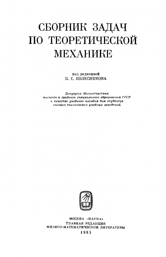 Книга: Колесников К.С. Сборник задач по теоретической механике 1983