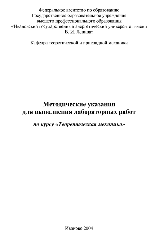 Для студентов ИГЭУ им. Ленина по предмету Теоретическая механикаМ.А. Ноздрин - Методические указания для выполнения лабораторных работ по курсу Теоретическая механикаМ.А. Ноздрин - Методические указания для выполнения лабораторных работ по курсу Теоретическая механика 2025-03-03СтудИзба