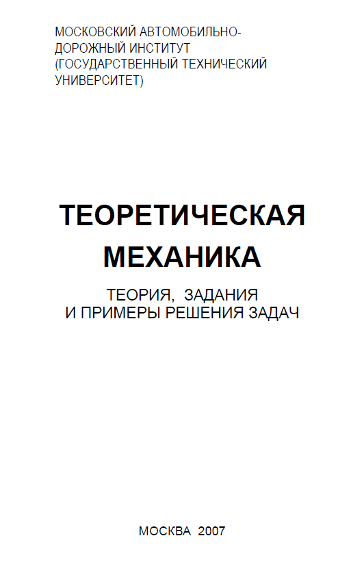 Главная » Учебные материалы » Теоретическая механика » Книги » МАДИ » Ермаков Б.Е. - Теоретическая механика. Теория, задания и примеры решения задач