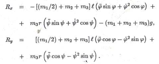 • З. Считая φ(t) и ψ(t) известными, найти проекции Rx и Ry реакции в шарнире О. Применить теорему о движении центра масс механической системы. Показать, что