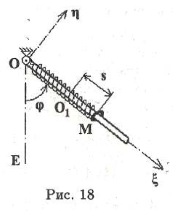 Колечко М веса Р прикреплено к концу пружины OM и может скользить вдоль стержня, который качается в вертикальной плоскости вокруг шарнира O(рис, 18). Жесткость пружины c. Длина недеформированной пружины OO1=l.