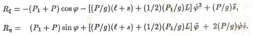 • З. Считая φ(t) и s(t) заданными функциями времени, найти реакцию шарнира O. Воспользоваться теоремой об изменении количества движения. Вес стержня равен Р1, его длина L. Показать, что для проекций Rζ и Rη реакции шарнира О справедливы формулы