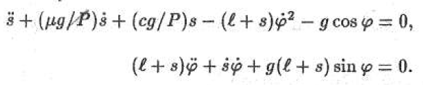 • 12. Задавая численные значения параметров и начальные условия: P=10Н, l=0,5м, c=20Н/м, t0=0, φ0=π/10, s0=0, φ0`=0,3с-1, s0`=0, составить программу решения системы дифференциальных уравнений и на ЭВМ построить зависимости φ(t), s(t), N(t) для значений μ, указанных в п. 11.
