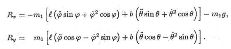 • 3. Полагая, что φ(t) и θ(t) — заданные функции времени, найти проекции Rx и Ry реакции шарнира O. Применить теорему об изменении количества движения системы. Показать, что