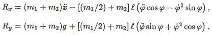 • 3. Считая функции x(t) и φ(t) известными, найти проекции Rx и Ry реакции шарнира О. Применить теорему о движении центра масс системы. Показать, что