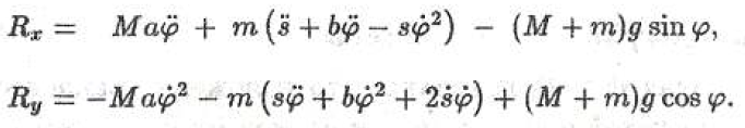 • З. С помощью теоремы о движении центра масс найти выражения для проекций Rx и Ry реакции шарнира O. Показать, что они вычисляются по формулам