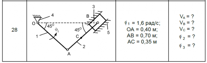 Найти модули скоростей точек A, B, Cи модули угловых скоростей звеньев этого механизма.