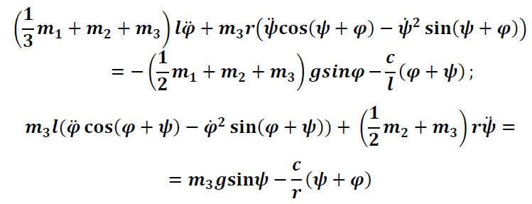 • 8. Составить дифференциальные уравнения движения системы, исходя из общего уравнения аналитической динамики и приняв за обобщенные координаты φ и ψ.