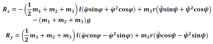 • З. Считая φ(t) и ψ(t) известными, найти проекции Rx и Ry реакции в шарнире О. Применить теорему о движении центра масс механической системы. Показать, что