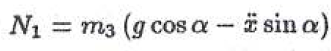 • 7. Полагая, что нить отсутствует, найти величину N1 силы давления груза на тележку. Применить принцип Даламбера. Показать, что