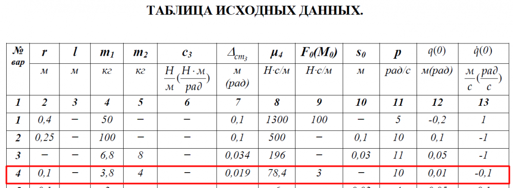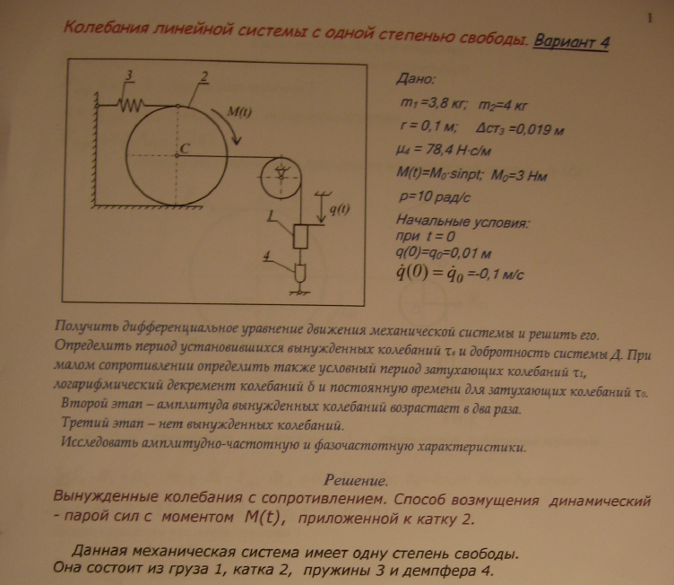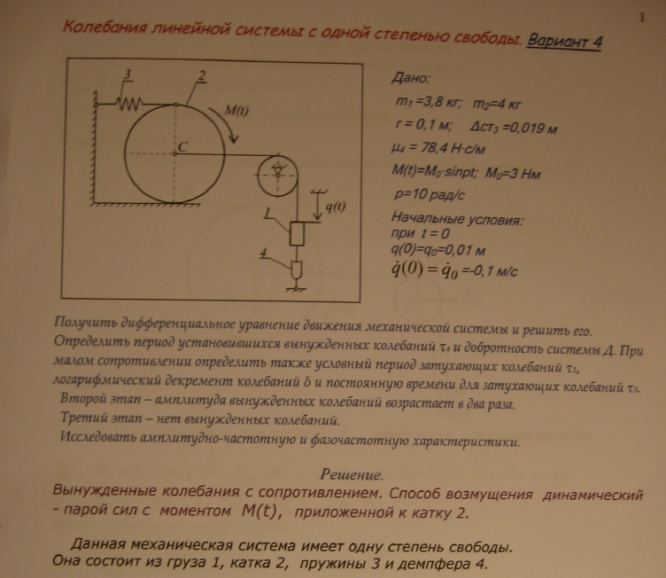 ДЗ 2: Колебания линейной системы с одной степенью свободы вариант 4