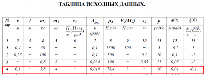 Внешнее воздействие во всех вариантах изменяется во времени по закону sinpt. При выполнении домашнего задания "Малые колебания - определение параметров колебательного процесса" необходимо: 1. Составить дифференциальное уравнение малых колебаний системы. 2. Получить решение этого уравнения и, используя заданные начальные условия, определить постоянные интегрирования. 3. Определить период установившихся вынужденных колебаний Tв и добротность системы Д, а для вариантов с малым линейно-вязким сопротивлением (n < k ) дополнительно: Т1 - условный период затухающих колебаний, δ - логарифмический декремент колебаний, τ0- постоянную времени затухающих колебаний. При выполнении домашнего задания "Малые колебания - исследование колебательного процесса" предполагается, что по истечении времени 4Tв + 3/n (4Tв + 3 τ0) амплитуда внешнего воздействия увеличивается в два раза, а еще через такой же промежуток времени внешнее воздействие прекращается.