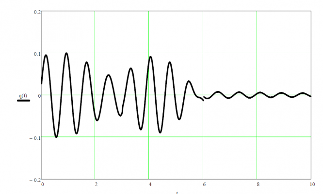 Необходимо: 1. Исследовать амплитудно-частотную и фазочастотную характеристики системы. 2. Исследовать процессы перехода от начального возмущенного состояния к установившимся вынужденным колебаниям, от установившихся вынужденных колебаний при исходной амплитуде внешнего воздействия к установившимся колебаниям при удвоении амплитуды и от последних к состоянию покоя после прекращения внешнего воздействия. 3. Построить график q(t), включающий все переходные процессы. .