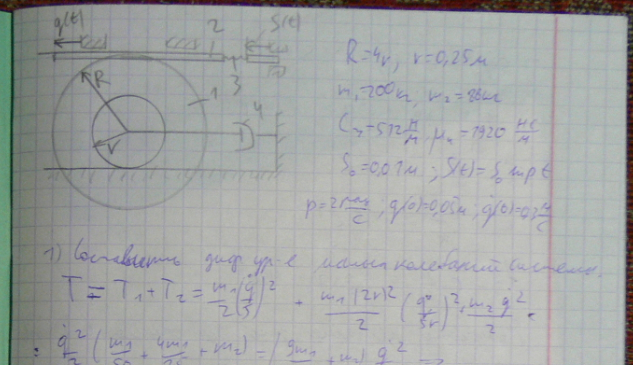 Внешнее воздействие во всех вариантах изменяется во времени по закону sinpt. При выполнении домашнего задания "Малые колебания - определение параметров колебательного процесса" необходимо: 1. Составить дифференциальное уравнение малых колебаний системы. 2. Получить решение этого уравнения и, используя заданные начальные условия, определить постоянные интегрирования. 3. Определить период установившихся вынужденных колебаний Tв и добротность системы Д, а для вариантов с малым линейно-вязким сопротивлением (n < k ) дополнительно: Т1 - условный период затухающих колебаний, δ - логарифмический декремент колебаний, τ0- постоянную времени затухающих колебаний. При выполнении домашнего задания "Малые колебания - исследование колебательного процесса" предполагается, что по истечении времени 4Tв + 3/n (4Tв + 3 τ0) амплитуда внешнего воздействия увеличивается в два раза, а еще через такой же промежуток времени внешнее воздействие прекращается.