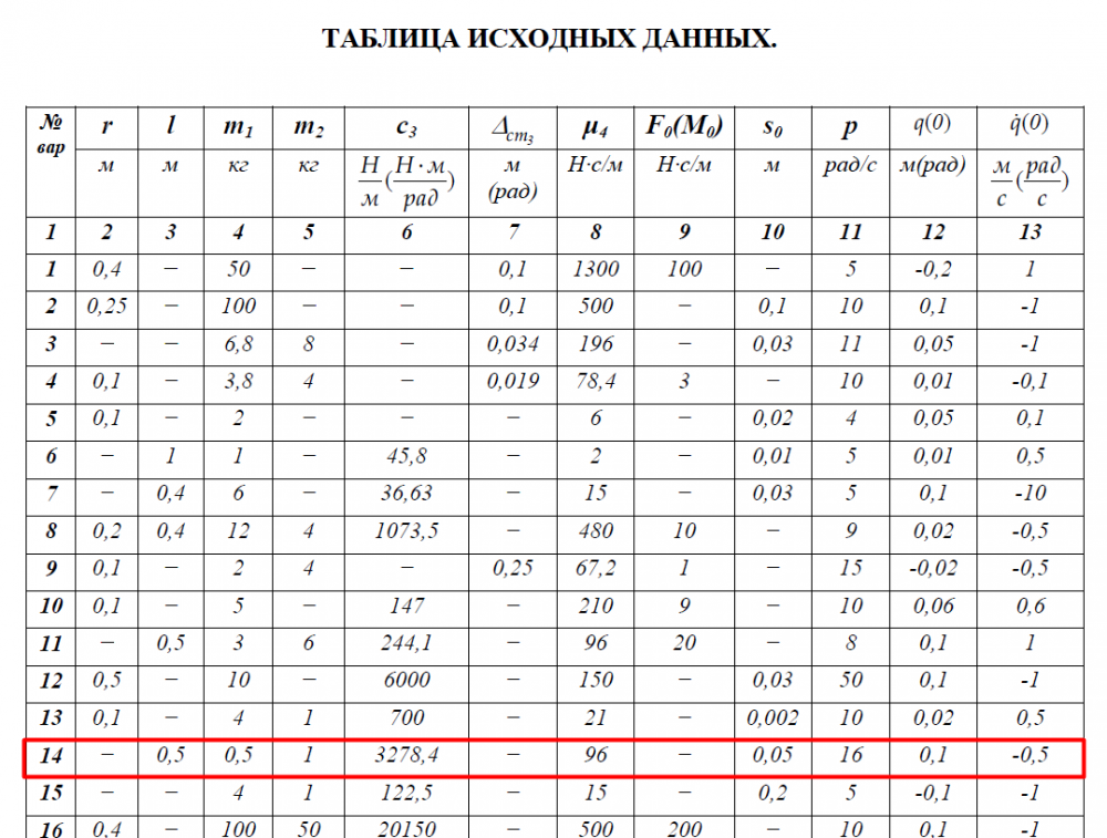 ДЗ 2: Колебания линейной системы с одной степенью свободы вариант 14