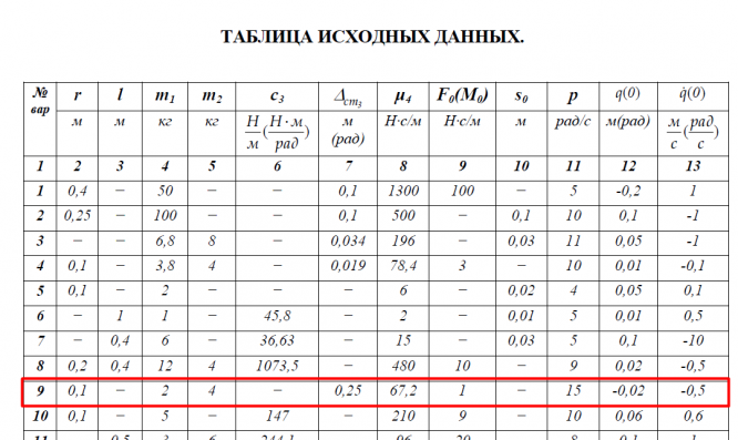 Колебания линейной системы с одной степенью свободы. Авторы Ильин М. М., Пожалостин А. А., Тушева Г. М. Издательство МГТУ им. Н. Э. Баумана 2002 год. УСЛОВИЯ ДОМАШНИХ ЗАДАНИЙ Рассматриваются малые колебания механической системы с одной степенью свободы около положения устойчивого равновесия. Механические системы представляют собой плоские механизмы, расположенные в вертикальной плоскости и состоящие из твёрдых тел, нитей, демпферов и упругих элементов. Необходимые числовые данные приведены в таблице и, где это необходимо, на схемах задач. Для всех вариантов на схемах задана обобщённая координата q(t) , отсчитываемая от положения равновесия в невозмущенном состоянии, а в таблице - соответствующие ей начальные условия.