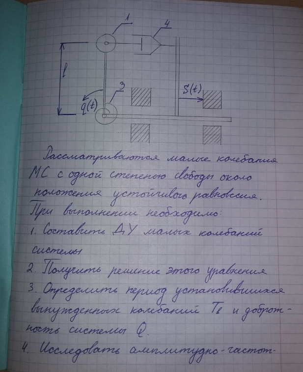 При выполнении домашнего задания \"Малые колебания - исследование колебательного процесса\" предполагается, что по истечении времени 4Tв + 3/n (4Tв + 3 τ0) амплитуда внешнего воздействия увеличивается в два раза, а еще через такой же промежуток времени внешнее воздействие прекращается. Необходимо: 1. Исследовать амплитудно-частотную и фазочастотную характеристики системы. 2. Исследовать процессы перехода от начального возмущенного состояния к установившимся вынужденным колебаниям, от установившихся вынужденных колебаний при исходной амплитуде внешнего воздействия к установившимся колебаниям при удвоении амплитуды и от последних к состоянию покоя после прекращения внешнего воздействия.