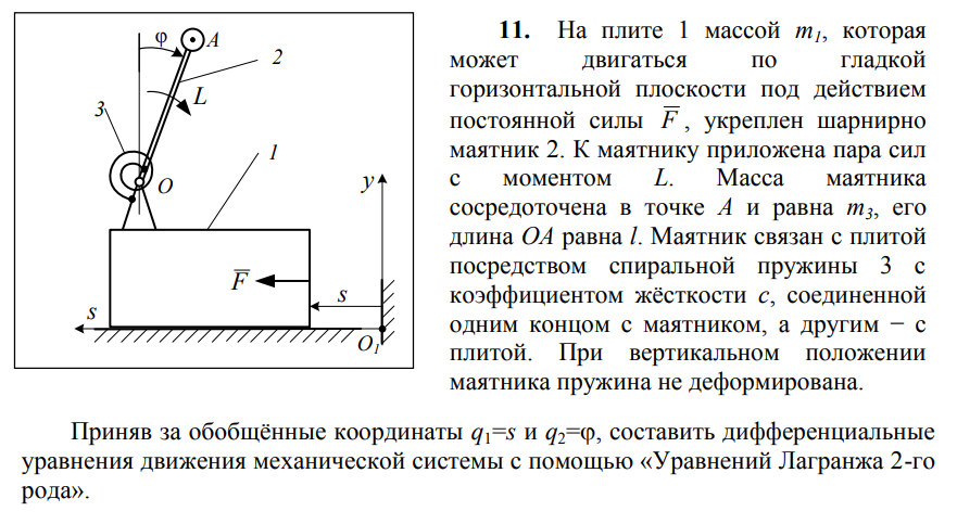ДЗ 3: Уравнения Лагранжа 2-го рода вариант 11