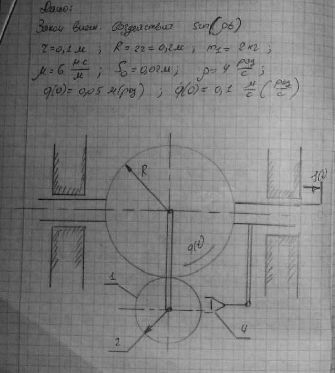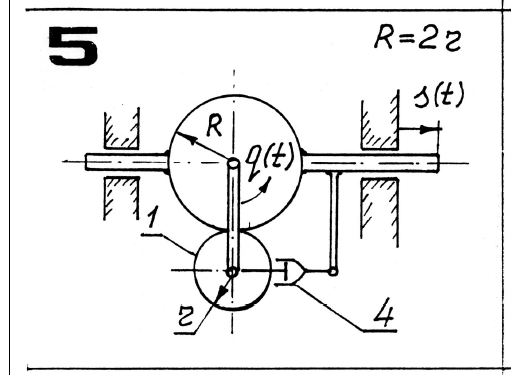 На всех схемах номерами 1, 2 обозначены звенья, массу которых необходимо учитывать при составлении дифференциального уравнения, номером 3 - упругий элемент, номером 4 - демпфер. Силы и моменты воздействия упругих элементов на тела пропорциональны удлинению пружин или углу закручивания спиральных пружин. Демпфер создает силу линейно-вязкого сопротивления R vп 4 , пропорциональную скорости движения поршня п v , где μ4 > 0 - коэффициент сопротивления демпфера. Там, где это необходимо, на схемах вариантов указан радиус инерции звена относительно центральной оси, в остальных вариантах тела вращения принять за однородные сплошные цилиндры. В вариантах 1,2,3,4, 9, 21, 27 характеристики упругих элементов заданы через их статические деформации 3 ст , (линейные или угловые).