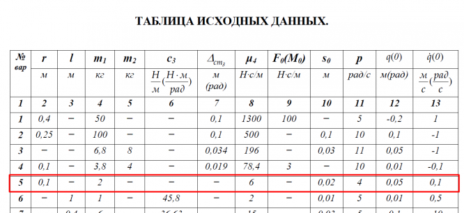Колебания линейной системы с одной степенью свободы. Авторы Ильин М. М., Пожалостин А. А., Тушева Г. М. Издательство МГТУ им. Н. Э. Баумана 2002 год. УСЛОВИЯ ДОМАШНИХ ЗАДАНИЙ Рассматриваются малые колебания механической системы с одной степенью свободы около положения устойчивого равновесия. Механические системы представляют собой плоские механизмы, расположенные в вертикальной плоскости и состоящие из твёрдых тел, нитей, демпферов и упругих элементов. Необходимые числовые данные приведены в таблице и, где это необходимо, на схемах задач. Для всех вариантов на схемах задана обобщённая координата q(t) , отсчитываемая от положения равновесия в невозмущенном состоянии, а в таблице - соответствующие ей начальные условия.