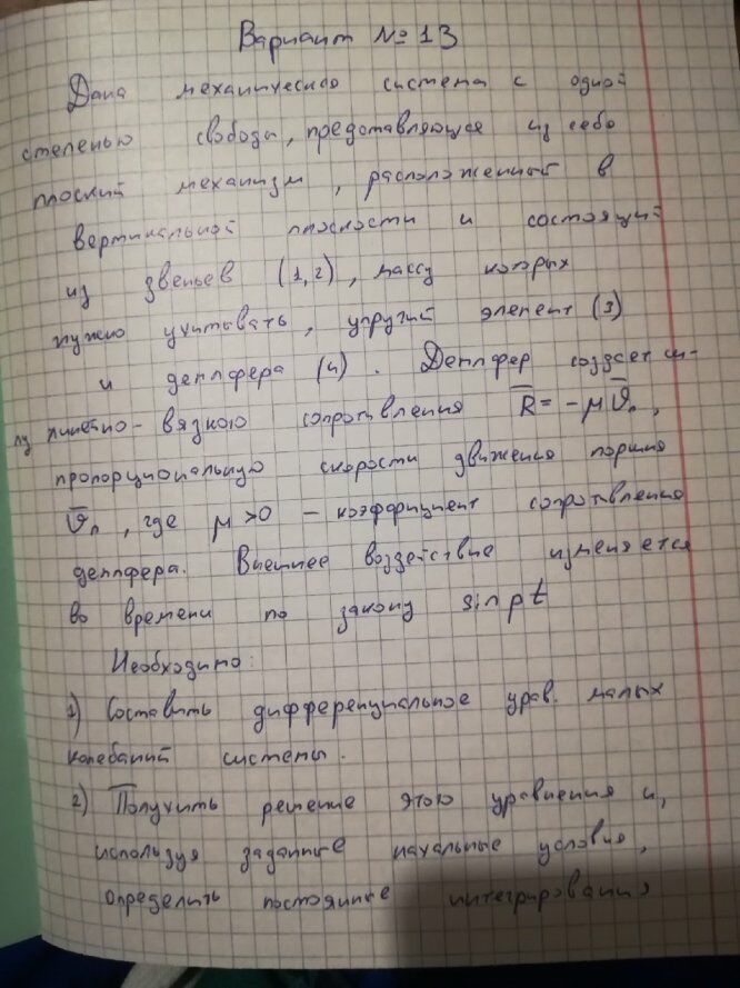ДЗ 2: Колебания линейной системы с одной степенью свободы вариант 13