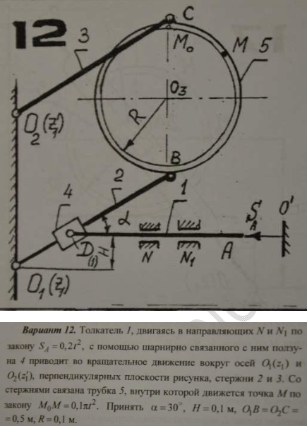 ДЗ 3: Кинематика сложного движения точки вариант 12
