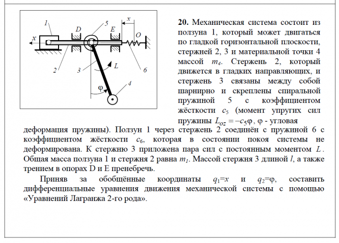 ДЗ 3: Уравнения Лагранжа 2-го рода вариант 20