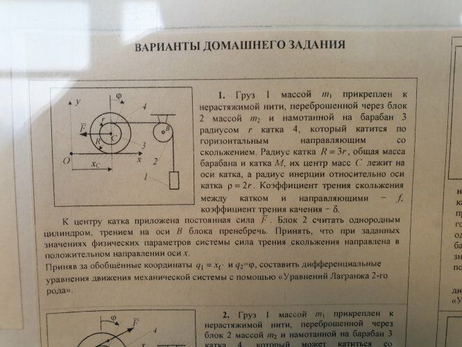 ДЗ 3: Уравнения Лагранжа 2-го рода вариант 1