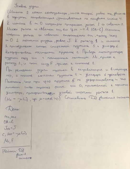 ДЗ 3: Уравнения Лагранжа 2-го рода вариант 10
