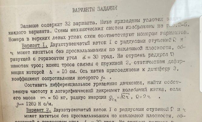 ДЗ 2: Колебания линейной системы с одной степенью свободы вариант 1