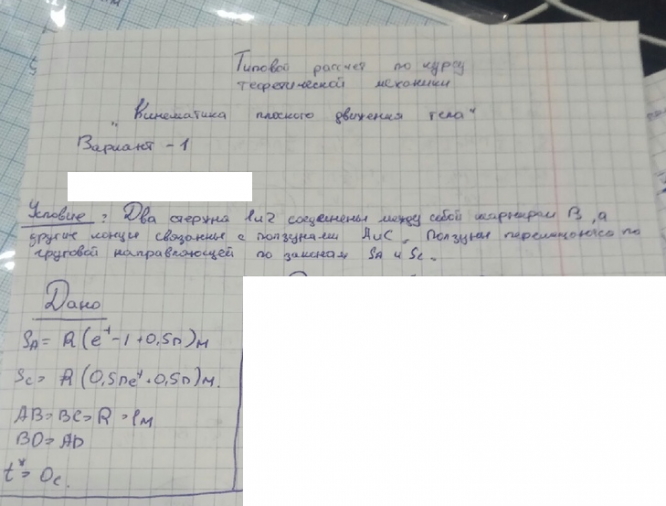 ДЗ 2: Кинематика плоского движения твердого тела вариант 1