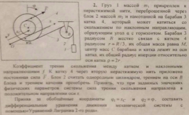 ДЗ 3: Уравнения Лагранжа 2-го рода вариант 2